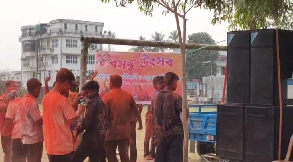 Dharmanagar, Tripura, 4th of March, 2026 : The cultural town of Dharmanagar came alive in the vibrant hues of spring, as the sky and air were filled with the colors of festivity. From children to the elderly, people of all ages and communities joined together on Wednesday to celebrate the festival of colors in a spirit of joy and unity. Various parts of the town witnessed enthusiasm, happiness, and a remarkable display of communal harmony.The traditional Dharmanagar Athletic Club and Noyapara Kalibari jointly organized a grand Spring Festival at the DNV School ground. From early morning, residents began gathering at the venue. Young men and women dressed in colorful kurtas, sarees, and floral garlands added to the festive charm, while teenagers and senior citizens also took part wholeheartedly. As rhythmic dance performances continued, clouds of colored powder filled the air, creating a mesmerizing spectacle.