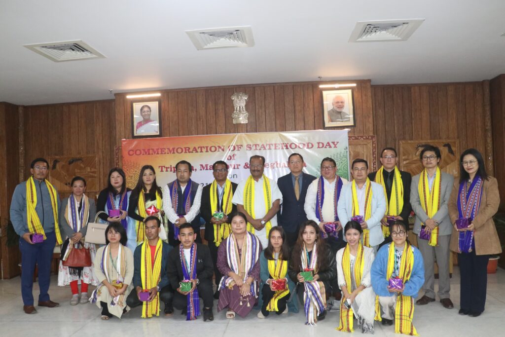 Agartala, Tripura, 21st of January 2025 : On the Commemoration of Statehood Day of Tripura, Manipur and Meghalaya at Raj Bhawan, Agartala on Tuesday, 2024). As part of the Statehood Day celebrations of Tripura, Meghalaya and Manipur, students from Manipur and Meghalaya, along with people from various Government posts distinguished dignitaries met Hon’ble Governor of Tripura Indrasena Reddy Nallu. The Governor highlighted various issues of Tripura before them. The Governor advised them to be ambassadors of their respective States and showcase their cultural and tourist attractions to the public.