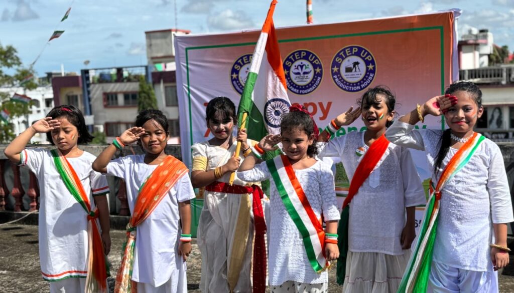 Agartala, Tripura, 15th of August 2025 : On the momentous occasion of the 79th Independence Day STEP UP Welfare Foundation observed 79th Independence Day on Friday (15th August, 2025). Director and Founder of STEP UP hoisted the national flag at STEP UP campus today. According to report, Ridishma Deb of STEP UP STARS was felicitated at Sri Krishna Mission School today. Sri D.B Das, Principal of Sri Krishna Mission, was felicitated by STEP UP.