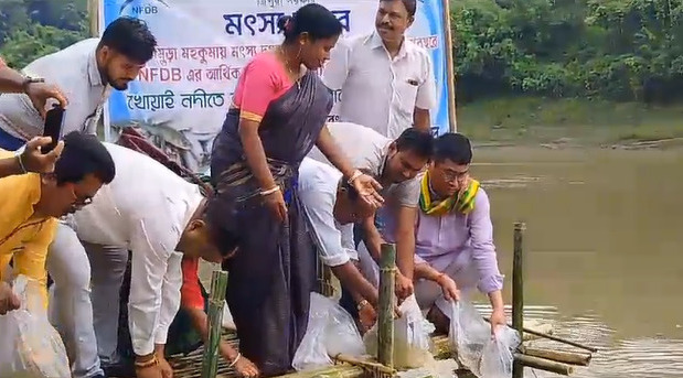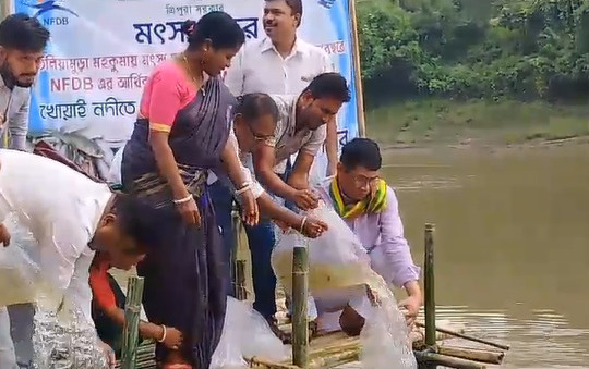 Stocking Of Fish Organized By Teliamura Fisheries Department.