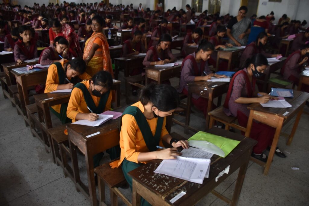 Students appear in the Term-II Tripura Board of Secondary Education (TBSE) for Class 10, at an examination centre in Agartala on Tuesday (26th April, 2022).