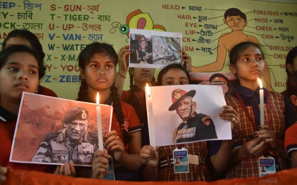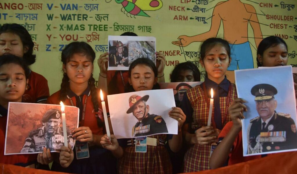 Students of Agartala’s Bhati Abhoynagar JB School on today (9th December, 2021) paid tributes to Chief of Defence Staff General Bipin Rawat, his wife and 11 Others who die in IAF Chopper Crash near Coonoor yesterday in Tamil Nadu.