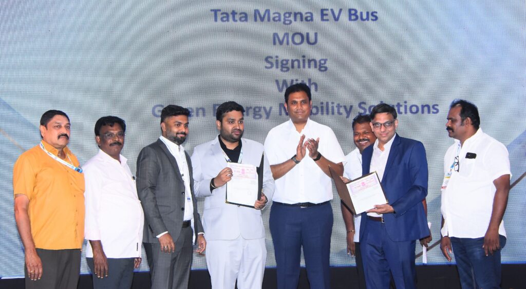 Bengaluru, Karnataka, 1st of August 2025 : Tata Motors, India’s largest commercial vehicle manufacturer, signed a Memorandum of Understanding (MoU) with Green Energy Mobility Solutions Pvt. Ltd (GEMS), the electric mobility arm promoted by Universal Bus Services (UBS) to supply 100 state-of-the-art Magna EV intercity coaches. The signing took place at Passenger Vehicle Expo 2.0 in Chennai, where Tata Motors is showcasing its latest commercial passenger mobility solutions, including the all-electric Magna EV and the LPO 1822, designed for superior performance, exceptional passenger comfort and best-in-class total cost of ownership.