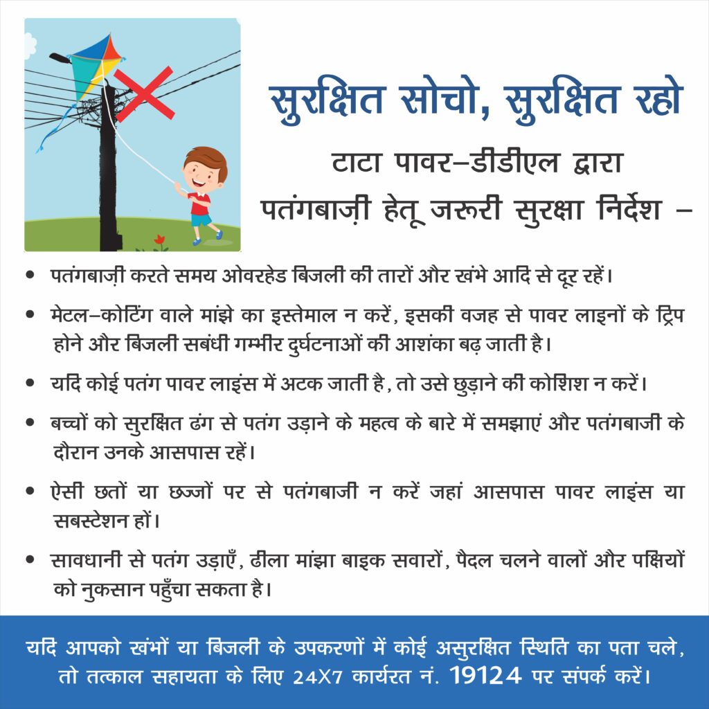 Sharing his insights on careful kite flying, Mr. Raj Kumar Rastogi, Chief-Operations and Safety, Tata Power-DDL said, “We urge everyone to fly kites away from electrical wires and installations, as it can lead to power tripping and even serious accidents / injuries. By following the recommended safety measures, citizens can honour the spirit of the occasion while safeguarding themselves and their communities.”