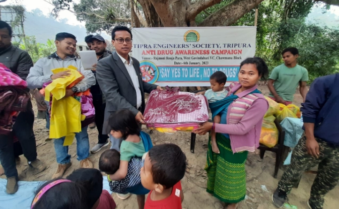 The TEST body has provided many important tips to the locals over the dangerous consequences of narcotic items. Addressing the programme participants TEST secretary Jiban Debbarma said, “Drugs pull the society backward and all drugs lead our youngsters into destruction. We have to save our social progress by demolishing all kinds of narcotic tendencies of different category of drugs. It is our fundamental responsibility to create proper awareness against narcotic abuses.” In the other hand the TEST has distributed 44 blankets among poor & needy families to prevent themselves from this terrible cool. The local people have appreciated this generous initiative and thanked the TEST for their good job.