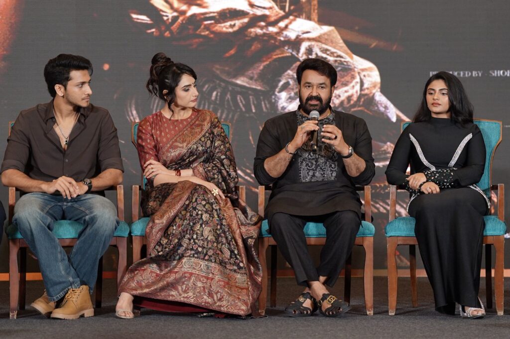 The event witnessed the presence of the film’s stellar cast Mohanlal, Samarjit Lankesh, Ragini Dwivedi, and Nayan Sarika, along with director Nanda Kishore. Producers Varun Mathur, Abishek S. Vyas, and Sanjay Dwivedi (Group CEO & CFO Balaji Telefilms) also graced the occasion, making it a memorable celebration of cinema, scale, and star power.