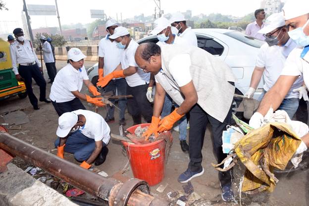New Delhi, Delhi, 21st of October, 2024 : As a part of the various initiatives being undertaken by the department during the Special Campaign 4.0, on 20th October, 2024 the Legislative Department organized a shramdaan event at a black spot i.e. Ghazipur, roundabout, East Delhi which was identified by the Department for cleanliness drive and to spread the message of cleanliness and hygiene. The event of sharmdaan was led by Dr. Rajiv Mani, Secretary Legislative Department and other senior officers of the Legislative Department namely, Shri Udaya Kumara, Additional Secretary, Shri R.K. Pattanayak, JS&LC/Nodal Officer, Dr. K.V. Kumar, JS&LC and Shri Dhruv Kumar Singh, CCA along with several officers and staff of the Department including attached offices and the Department of Legal Affairs. On the occasion, Secretary (LD) distributed Swachhata Kit/ T-Shirt/ Cap to the Safai Karamchari and emphasized upon the importance of the Campaign, the overall benefit of the society and the nation.
