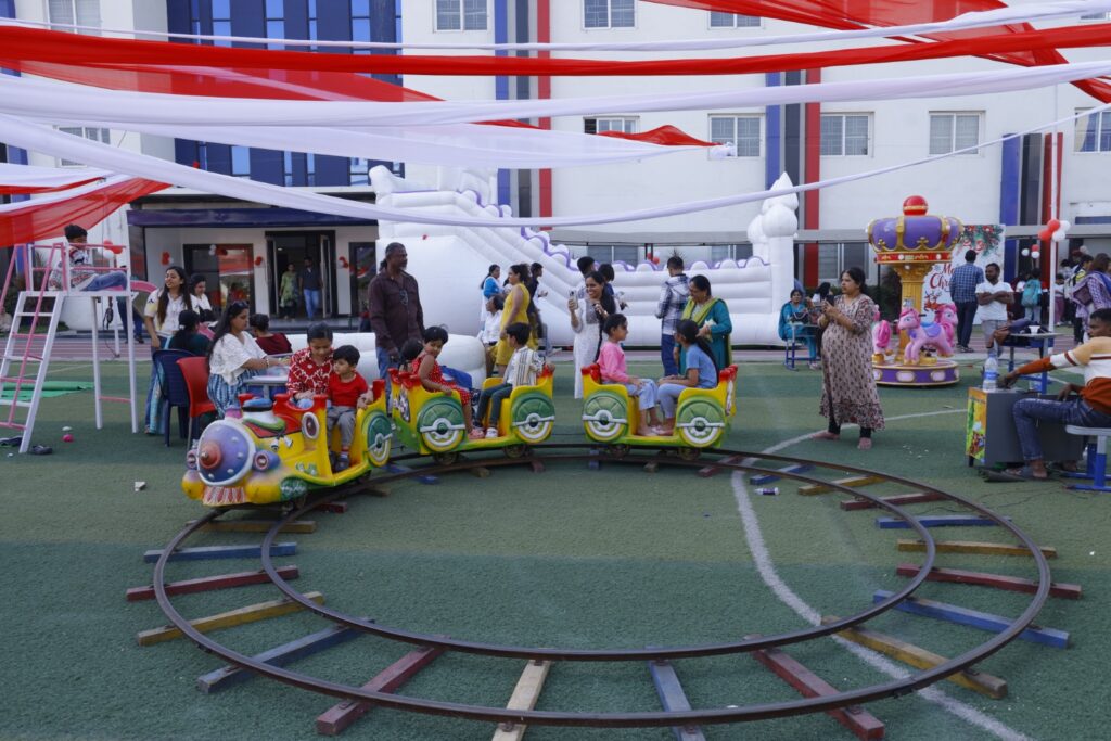 The day-long carnival brought together students, parents, and the larger community in a lively setting filled with amusement rides, food stalls, games, student performances, music, dance, and interactive activities, offering a memorable Christmas experience for all.