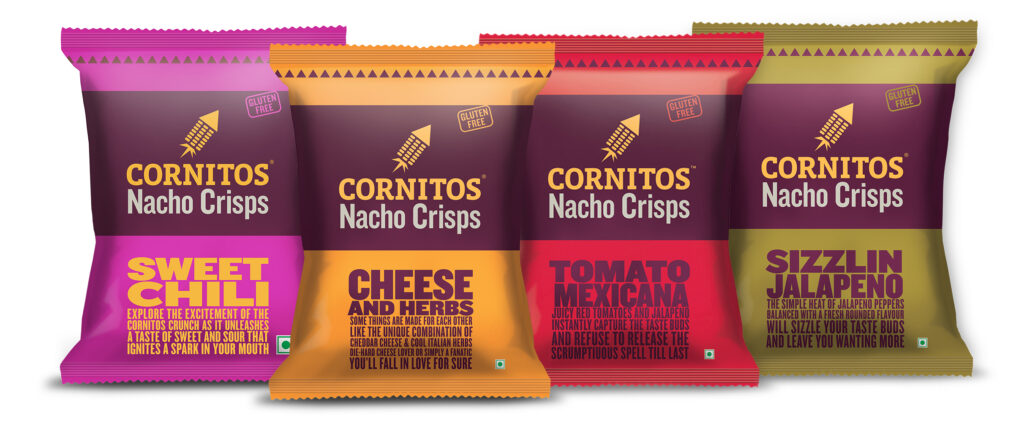 Cornitos is the largest brand in the Nacho Crisps category in India. Cornitos Brand Portfolio includes Nacho Crisps, Taco Shells, Chunky Salsa Dips, Cheese dips, Roasted Premium Nuts, Cashews, Peanuts Almonds, Roasted Salted Pumpkin Seeds, Sunflower seeds, Coated Green Peas and Pickles – Jalapeno Peppers & Gherkins. Cornitos has an extensive distribution network across Pan India. Complete Range of Products available in Retail, E-Retail and Modern Trade stores. Institutional sales across through Airlines, Horeca, Multiplexes and Cafes. Cornitos products are exported globally, to USA, Australia, China, Russia, UAE, Saudi Arabia, Maldives, Hong Kong, Nepal, Srilanka, Pakistan and South East Asia.