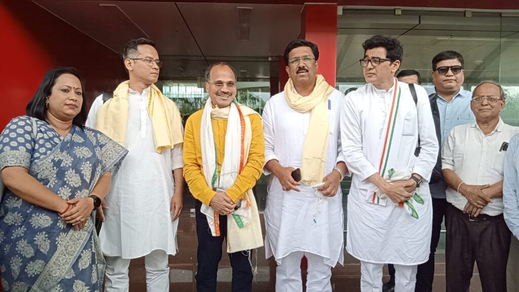 Three member senior leaders delegation of Congress party Hon’ble MP Adhir Ranjan Chowdhury, Hon’ble MP Gaurav Gogoi and Hon’ble MP Dr. Naseer Hussain arrived in Tripura on Monday (27th June, 2022). They were welcomed and received by senior leaders of the Tripura Pradesh Congress at Maharaja Bir Bikram (MBB) International Airport, Agartala.