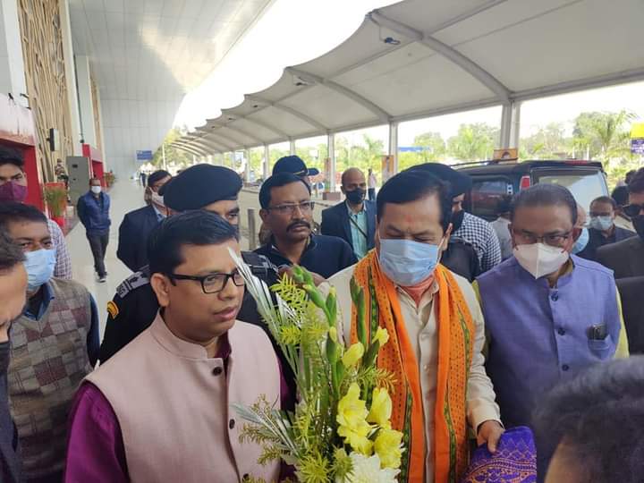 Tripura Industrial Development Corporation (TIDC), chairman Tinku Roy received and welcomed Hon’ble Union Ports, Shipping, Waterways and Ayush Minister Sarbananda Sonowal at Maharaja Bir Bikram (MBB) International Airport, Agartala on Tuesday (15th February, 2022).