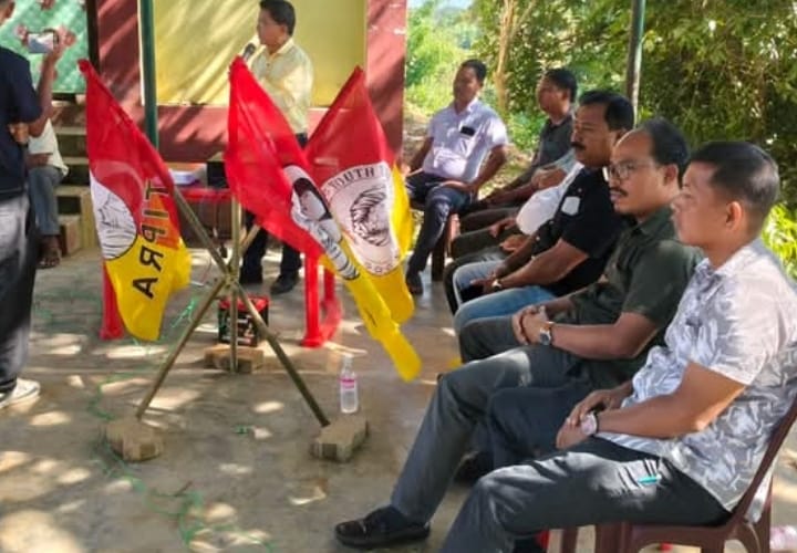 Ampi, Tripura, 20th of November 2025 : Aiming to upcoming mass gathering on 27th of November 2025 in Agartala Ampi block TMP committee has organized an awareness programme here in Kasku market in Gomati Tripura today. On this occasion Ampi block TMP committee members and local party members have assembled here in the programme and created an awareness campaign to inspire indigenous people to attend the mass gathering on 27th of November in Agartala. Amidst the leaders there were Ampi TMP block committee president Sanjay Jamatia, YTF president Debarshi Jamatia, Uttam Kumar Jamatia and TMP wings activists remained present in the programme.