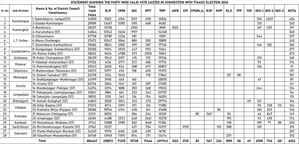 Mixed Results In North District, But Overall Surge For Tipra Motha—BJP Suffers Major Setback In TTAADC.