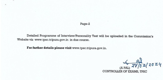 Information detailed regarding please visit in the Website – https://tpsc.tripura.gov.in