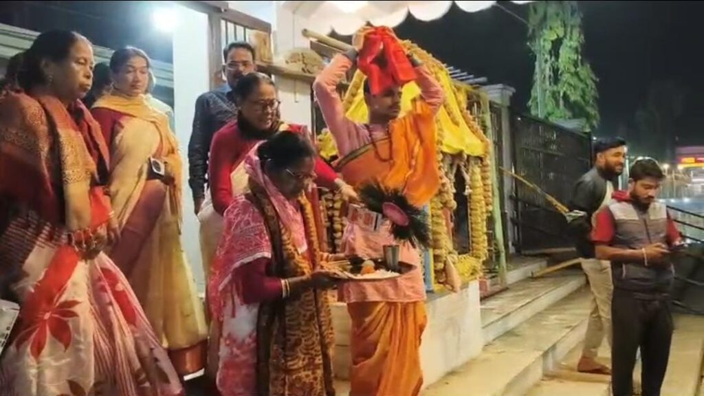 Dharmanagar, Tripura, 14th of February, 2026 : A grand and colorful procession was held on Saturday on the occasion of Shiv Chaturdashi at the century-old Shiva temple located at Shivbari in Dharmanagar. The temple premises witnessed a festive atmosphere from early morning as a large number of devotees gathered to offer their prayers.The temple courtyard was beautifully decorated with incense, lamps, bel leaves, and vibrant flowers. Amid the rhythmic beats of drums and the resonating sound of conch shells, devotees filled the air with chants of “Bol Bam,” creating a spiritually uplifting environment.