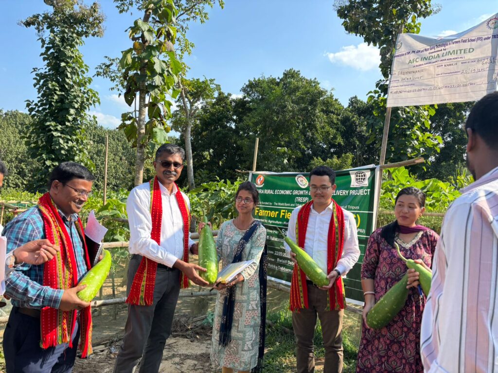 Agartala, Tripura, 21st of November, 2025 : In a remarkable display of progress under the Tripura Rural Economic Growth and Service Delivery Project (TRESP), Dr. K. Sasi Kumar, IFS, Secretary of the Tribal Welfare Department, along with Specialists from the TRESP PMU, visited Salswkang Producer Group (PG) in South Maharanipur under Mungiakami Block of Khowai district. The visit showcased the inspiring success of tribal women farmers who have achieved excellent results in bottle gourd cultivation.