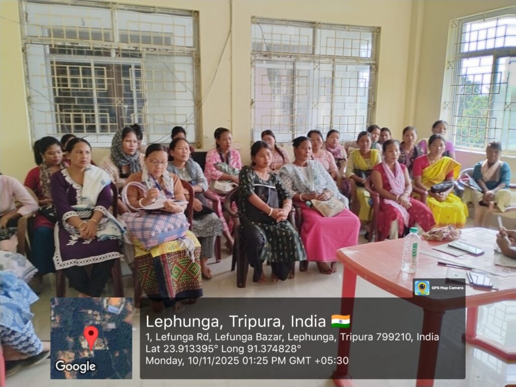 Simultaneously, under Lefunga Block, a 1-day Pre-Cultivation and Refresher Training for the Rabi Season was held at the Block Conference Hall. The session focused on pre-cultivation steps, field planning, and the role of Krishi Sakhis in smooth Rabi implementation. The training was facilitated by Mr. Pradyut Debbarma (TSA Field Expert) and Ms. Shilpa Debbarma (CC Agri-Horti, BPMU Lefunga), ensuring hands-on guidance to field functionaries and community resource persons.