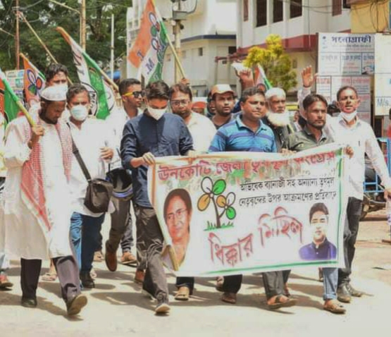 Trinamool Congress workers have been protesting against the attack on MP and National General Secretary of All India Trinamool Congress Abhishek Banerjee, Trinamool Congress workers and police attacking students on different places of the State, on Today (4th August, 2021) in Unakoti.