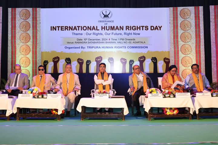 Agartala, Tripura, 10th of December, 2024 : With the initiative of Tripura Human Rights Commission celebrated International Human Rights Day at Rabindra Satabarshiki Bhawan, Agartala on Tuesday (10th December, 2024). In the presence of many distinguished dignitaries Hon’ble Chief Minister Dr. Manik Saha inaugurated the programme by lighting the lamp.