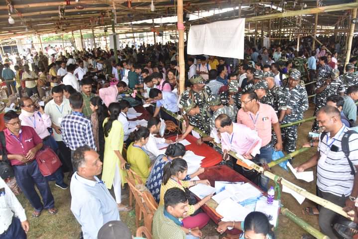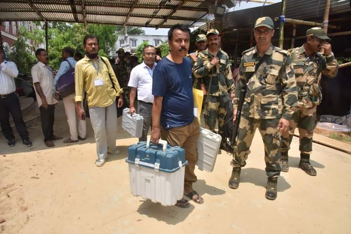Agartala, 18th of April, 2024 : Polling Parties moving to their assigned polling stations after collecting the EVMs & polling materials ahead of Polls at Umakanta Academy English Medium School, Agartala on Thursday (18th April, 2024). Tripura West Parliamentary Constituency polls and By-election Ramnagar-7 Assembly Constituency polls will be held on tomorrow (19th April, 2024). The counting of votes will take place on 4th June (Tuesday).