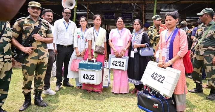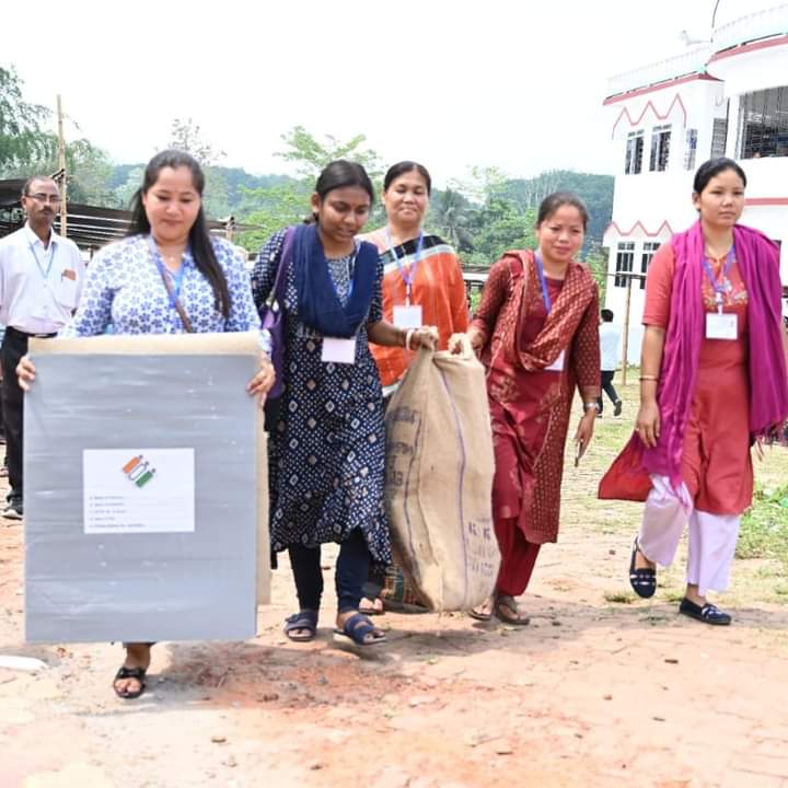 Dharmanagar, 25th of April, 2024 : Polling Parties moving to their assigned polling stations after collecting the EVMs & polling materials ahead of Lok Sabha Election 2024 in the 2-Tripura East (ST) Parliamentary Constituency on Thursday (25th April, 2024). 2-Tripura East (ST) Parliamentary Constituency Lok Sabha polls will be held on tomorrow (26th April, 2024). The counting of votes will take place on 4th June (Tuesday).