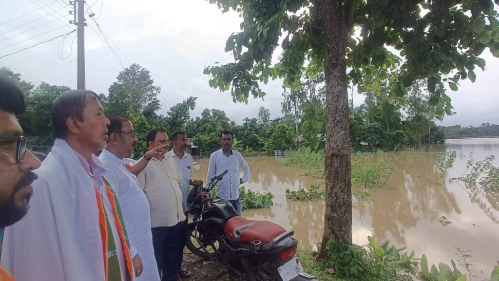 Agartala, Tripura, 3rd of August, 2024 : Tripura Pradesh Bharatiya Janata Party (BJP) President Rajib Bhattacharjee on Saturday (3rd August, 2024) visited the flood affected areas and the relief camps of Burrowj colony under Hrishyamukh Assembly Constituency and interacted with the victims’ families and extend all kinds of help. He assure the affected families of all kinds of Government assistance.