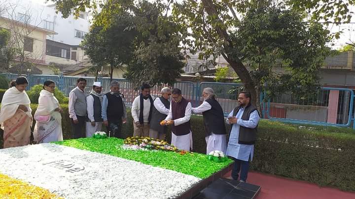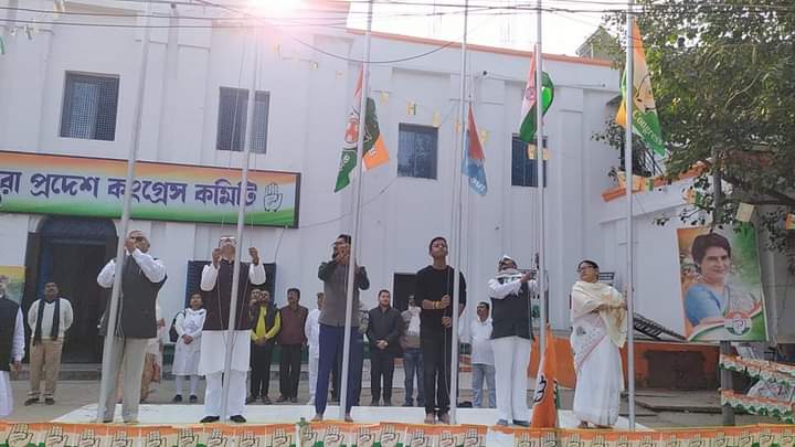 Agartala, 30th of January, 2024 : Tripura Pradesh Congress Committee (TPCC) observed Mahatma Gandhi death Anniversary at Congress Bhavan, Post office Chowmuhani in Agartala on Tuesday (30th January, 2024). Hoisted the national flag and party flag on the occasion of Mahatma Gandhi death anniversary. After hoisting the flag, they paid homage to the Mahatma Gandhi. Tripura Pradesh Congress Committee (TPCC) president Ashish Kumar Saha, other congress leaders and activists also paid tribute.