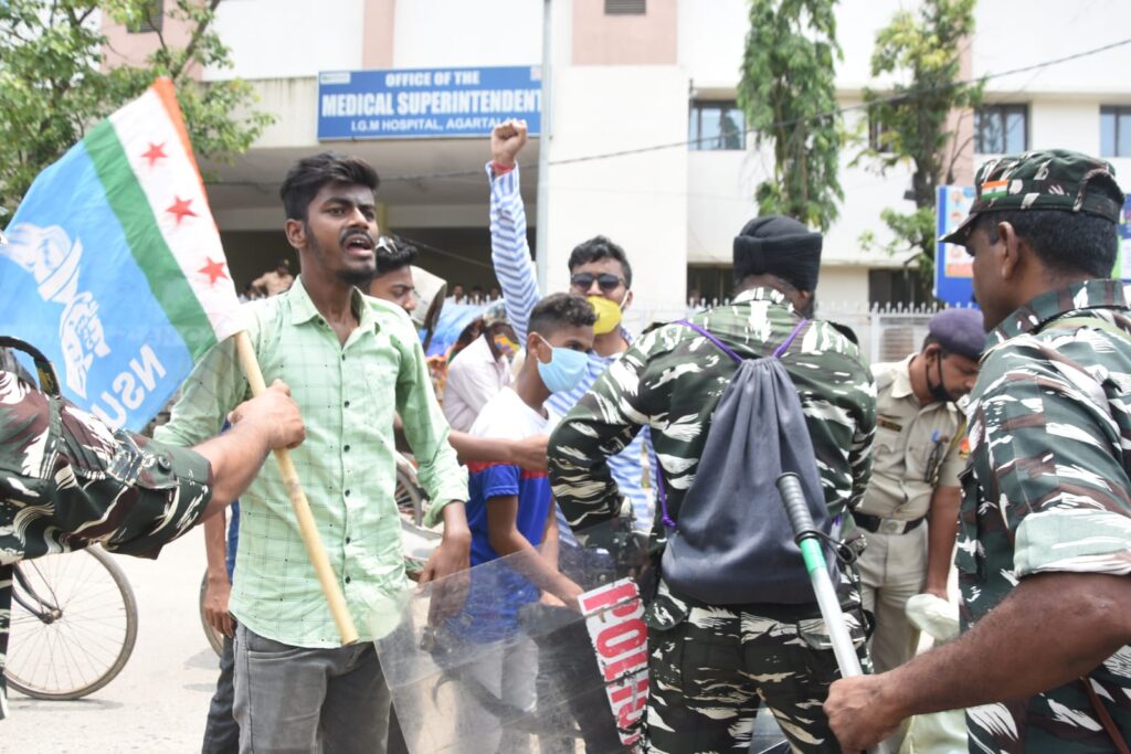 Tripura Pradesh NSUI activists protested against the Teachers’ Crisis in Tripura schools infront of Chief Minister official residence, Agartala on Monday (1st August, 2022).
