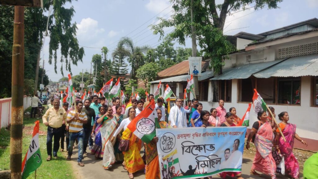 Tripura Pradesh Trinamool Congress Activists Protest Rally Against The Price Hike Of Essential Commodities.