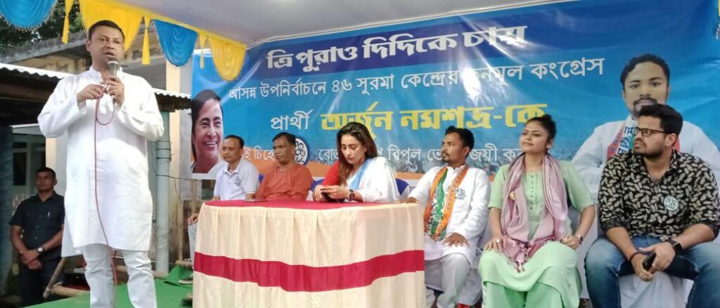 Tripura Pradesh Trinamool Congress has organized rally for the By-Election in Surma-46 Assembly Constituency on Wednesday (15th June, 2022). Tripura Pradesh Trinamool Congress General Secretary Baptu Chakraborty and other TMC leaders were present at the rally.