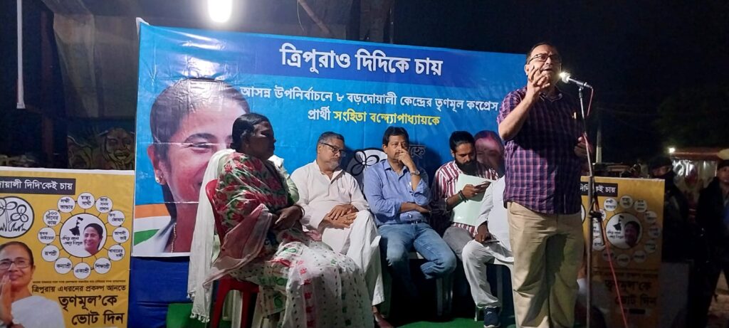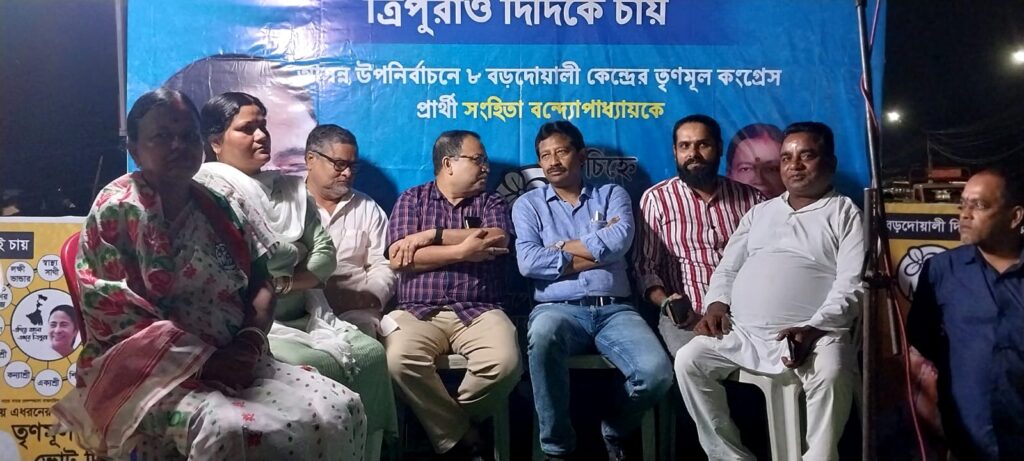 Tripura Pradesh Trinamool Congress has organized rally for the By-Election at Town Bordowali-8 Assembly constituency, Agartala on Monday (13th June, 2022). All India Trinamool Congress leader Kunal Ghosh, Tripura Pradesh Trinamool Congress State In-charge Rajib Banerjee, Tripura Pradesh Trinamool Congress President Subal Bhowmik and other TMC leaders were present at the rally.