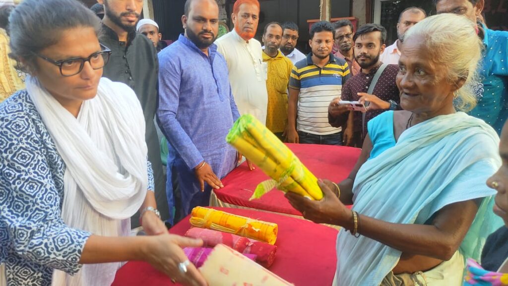 Tripura Pradesh Trinamool Congress (TMC) activists distributed clothes on the occasion of Durga Puja Festival at Sonamura on Wednesday (28th September, 2022). Hon’ble MP and Member of All India Trinamool Congress Sushmita Dev and other TMC leaders were present.
