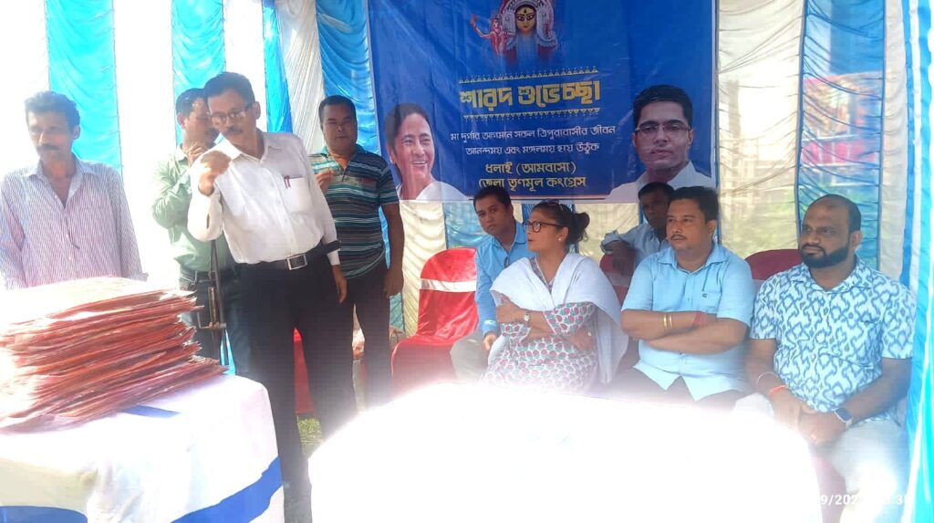 Tripura Pradesh Trinamool Congress (TMC) activists distributed clothes on the occasion of Durga Puja Festival at Ambassa on Thursday (29th September, 2022). Hon’ble MP and Member of All India Trinamool Congress Sushmita Dev and other TMC leaders were present.
