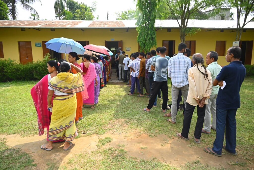 Agartala, Tripura, 12th of April 2026 : Voters are standing in a queue to cast their vote for the Tripura Tribal Areas Autonomous District Council (TTAADC) election 2026 in village Khash Noagoan, 24-Rajibgandhi – East (ST) DC Constituency on Sunday (12th April, 2026).