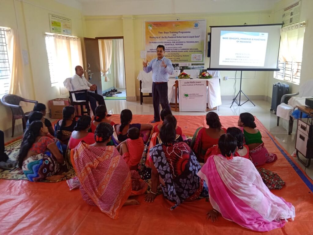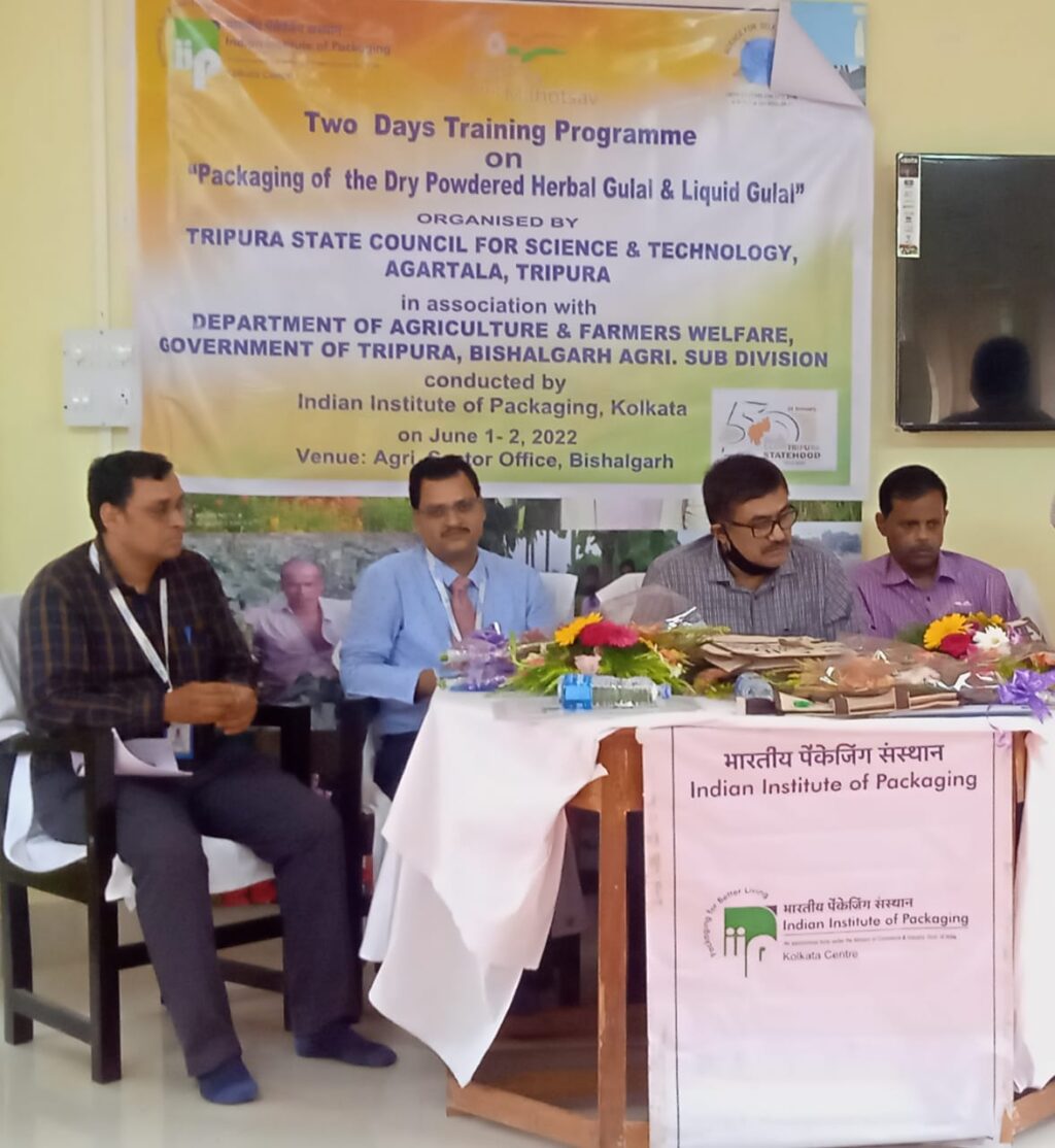 Tripura State Council For Science & Technology, Agartala, Tripura organized Two (1st & 2nd, June) Days training programme on “Packaging of the Dry Powdered Harbal Gulal & Liquid Gulal” at Agri. Sector office, Bishalgarh on Wednesday (1st June, 2022).