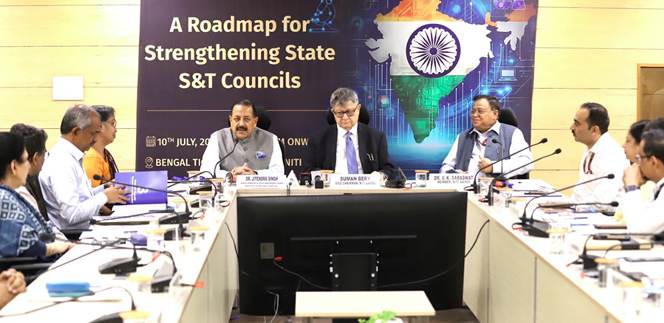 New Delhi, Delhi, 10th of July, 2025 : Union Minister of State (Independent Charge) for Science & Technology, Earth Sciences, MoS PMO, Personnel, Public Grievances, Pensions, Atomic Energy and Space, Dr. Jitendra Singh unveiled the ‘NITI Aayog’s Roadmap for Strengthening State Science and Technology Councils’ at NITI Aayog complex, here today. The roadmap is a major step toward building a robust and coordinated science and technology ecosystem across the States to fuel India’s transformation into a knowledge-driven economy.