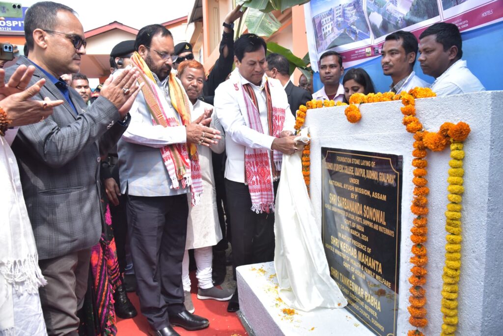 Dudhnoi 4th of March : The Union Minister of Ports, Shipping & Waterways and Ayush, Sarbananda Sonowal laid the foundation stone for the second Ayurvedic College of Assam since independence here today. Sonowal also laid foundation stones for construction of two 50 bedded Ayush hospitals at Mowamarirjhar in Kokrajhar and at Silbari in Baksa, virtually from here.
