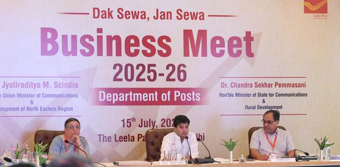 New Delhi, Delhi, 15th of July 2025 : The Department of Posts convened its Annual Business Meet 2025–26 in New Delhi under the leadership of the Union Minister of Communications and DoNER Shri Jyotiraditya M. Scindia. This strategic gathering brought together Heads of Circles from across the country to deliberate on the roadmap for India Post’s business transformation and its evolving role as a premium logistics and citizen-centric service provider.