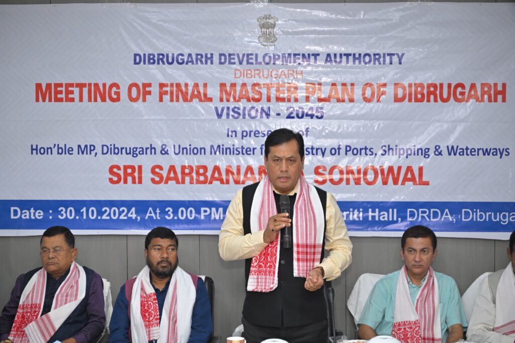 New Delhi, Delhi, 30th of October, 2024 : The Union Minister of Ports, Shipping & Waterways, Sarbananda Sonowal attended the meeting on the Final Master Plan of Dibrugarh – Vision 2045 – by the Dibrugarh Development Authority (DDA) here today. The masterplan by DDA envisaged challenges that comes along rapid development and progress of the city and provided modern solutions in order to ensure better quality of living as well as ensuring sustainable development.