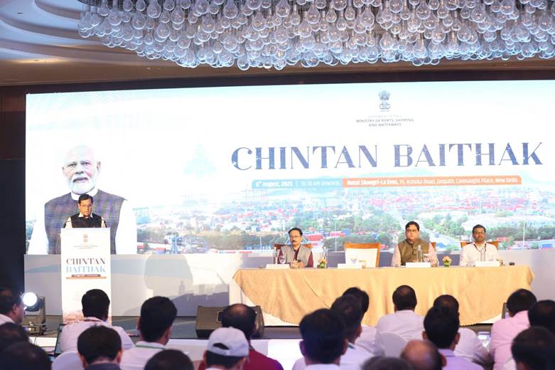 New Delhi, Delhi, 6th of August, 2025 : The Union Minister of Ports, Shipping & Waterways (MoPSW), Shri Sarbananda Sonowal delivered an address at the Chintan Baithak of the Ministry here today. The Union Minister called on officials to lead with purpose, innovation and reform-driven thinking to drive India’s maritime transformation and repurpose the Maritime Ecosystem for Viksit Bharat by 2047.
