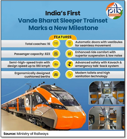 The Vande Bharat trains reflect Indian Railways’ strategic shift towards modern, efficient, and passenger-centric rail services, supported by continuous infrastructure upgradation and indigenous manufacturing capability. Through the expansion of new-generation trainsets, diversified variants, and improved onboard services, Vande Bharat is strengthening regional connectivity and improving the quality of inter-city travel. These trains underscore the role of rail infrastructure as a critical enabler of economic integration, sustainable mobility, and inclusive national development.