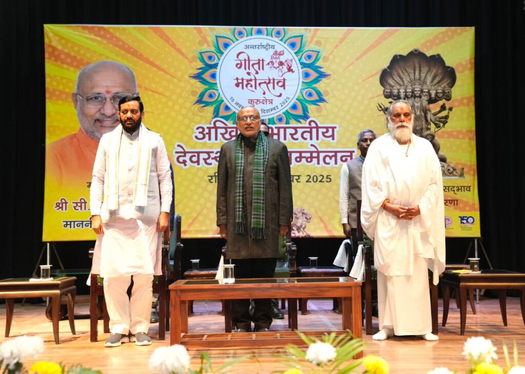 New Delhi, Delhi, 30th of November, 2025 : The Vice-President of India, Shri C. P. Radhakrishnan, participated as the Chief Guest at the Akhil Bhartiya Devsthanam Sammelan, organised on the sidelines of the International Gita Mahotsav 2025 today in Kurukshetra, Haryana.