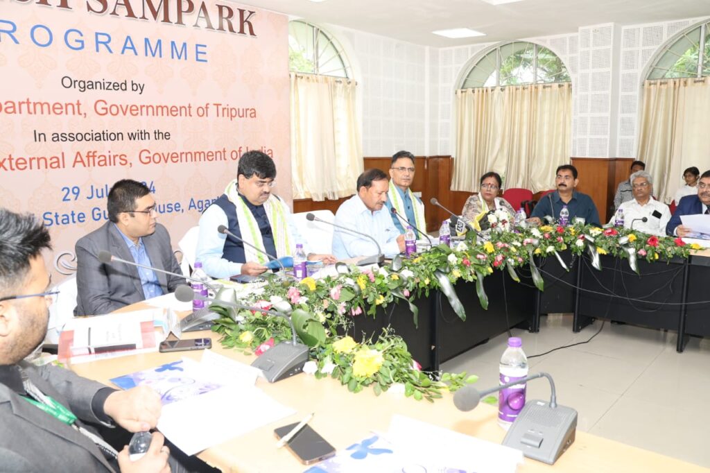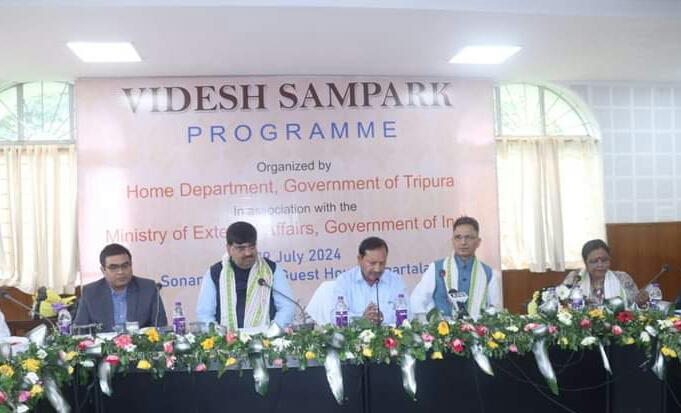 Agartala, Tripura, 29th of July, 2024 : With the initiative of Home Department Government of Tripura ‘Videsh Sampark‘ (Foreign Relations Programme) programme organized in collaboration with the Ministry of External Affairs Government of India at State Guest House, Agartala on Monday (29th July, 2024). This is for the first time that the state’s Home Department, in collaboration with the Ministry of External Affairs, Government of India organized such an awareness programme.