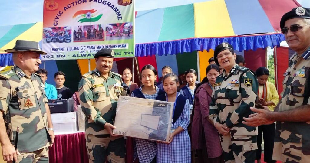 DG BSF inaugurated Border out Post Greh Chand Para, 192 BN BSF under Dhalai district and reviewed ongoing fencing and road work. Under Civic Action Programme distributed computer and study material among the students. He also distributed sewing machine and other essential items amongst women of nearby villages to empower and make them economically self-sufficient.