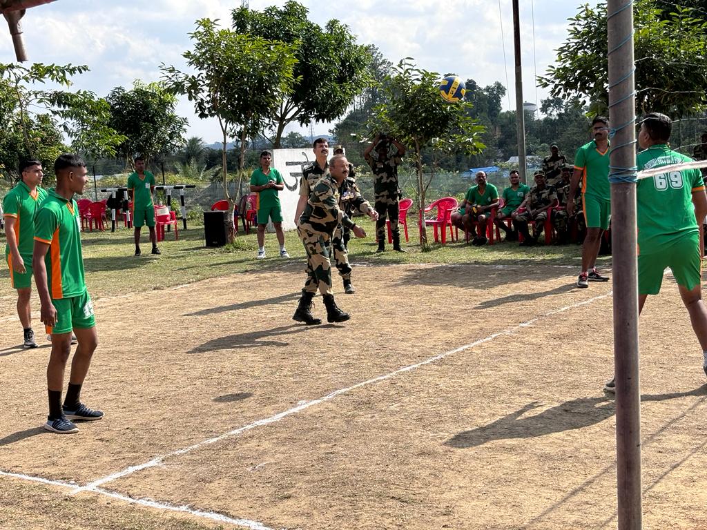 Sepahijala  21st of December 2023 : On the 2nd day of visit to Tripura Frontier, Sh Nitin Agrawal, IPS, DG BSF accompanied by Ms Sonali Mishra, ADG (Eastern Command) visited  the area of Border out post (BOP) NC Nagar, 133 BN BSF, Sonamura in Sepahijala district. During the visit, DG BSF inspected the ongoing border fencing work and reviewed the operational preparedness of the BSF Battalion deployed in the area. He also participated in Inter Battalion friendly volleyball match played between the troops.