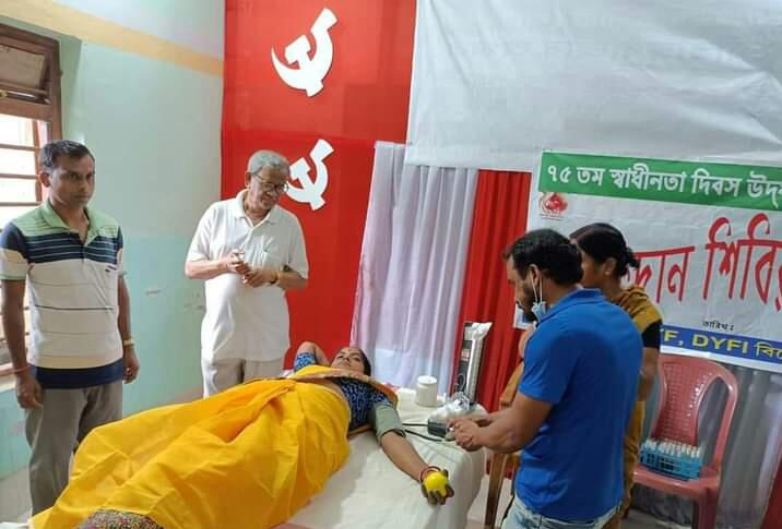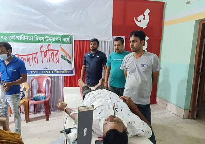 The Democratic Youth Federation of India (DYFI) and Tribal Youth Federation (TYF) activists on Wednesday (10th August, 2022) has organized Voluntary Blood Donation Camp on the occasion of 75th Years of Independence Day at Belonia.