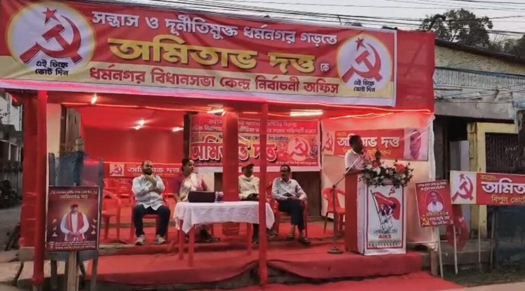 State leader Amal Chakraborty also addressed the gathering, stating that there is no alternative to CPIM in ensuring overall development, peace, and stability in Dharmanagar. He called upon party workers and supporters to carry out door-to-door campaigning.Several other senior leaders, including MLA Shailendra Chandra Nath, were also present at the event. All of them collectively urged party workers to put in their full effort to secure victory for the party’s candidate. A large number of party workers and supporters attended the inauguration, which political observers believe reflects the organizational strength of CPIM ahead of the upcoming by-election