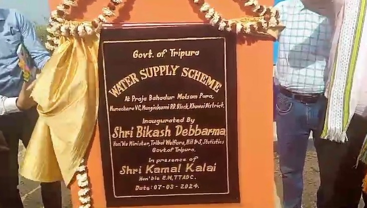 Teliamura, 7th of March 2024 : Hon’ble Tribal Welfare, Handloom, Handicrafts & Sericulture, Statistics Minister Bikash Debbarma inaugurated the Water Treatment Plant under the Jal Jeevan Mission project at Praja Bahadur Molsom para, Mungiakami R.D Block under Khowai District on Thursday (7th March, 2024).