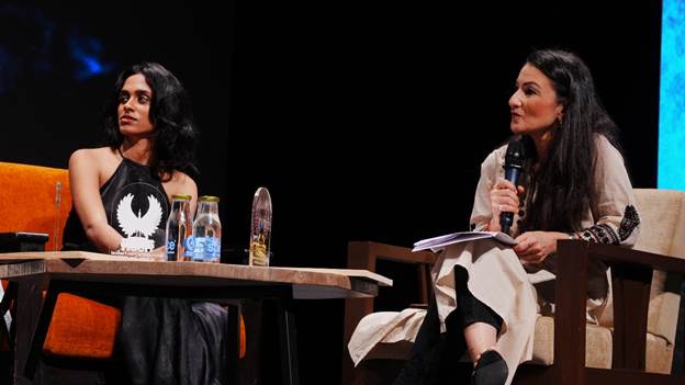 On the question of how actors shape on-set narratives, Meenakshi noted that newcomers often lack the freedom to choose their collaborators, but as her career grows she hopes to work with more women filmmakers. Rajni observed that OTT platforms have expanded the kinds of roles available to women, giving them greater depth and presence. Fowzia added that more women actors are now moving into production, widening the circle of creative decision-makers. Meenakshi spoke of her own desire to one day produce films, while Rachel reflected on Hollywood’s long presence of women producers and the hurdles they continue to navigate. Rachel also touched on pay parity, noting that meaningful change requires men to acknowledge the imbalance and support efforts that ensure fairness for women.