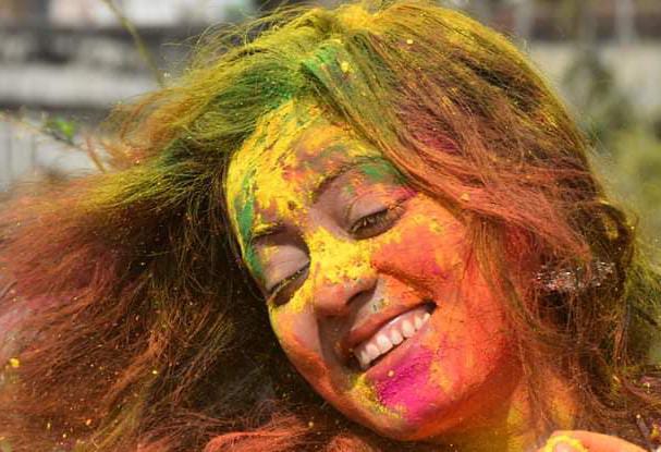 Women play with colours ahead of the festival of Holi in Agartala on Monday (6th March, 2023).